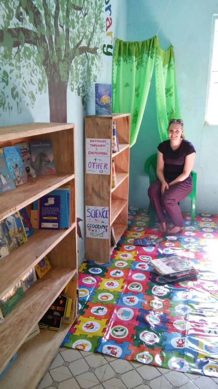 When I was shown around the school Mike showed me the ICT and library room - one end ICT and the other end to be the library. But they still needed to get some shelves to make the library. So I thought this would be a great way to use the donation my mum and grandma made before my trip. We got shelves made, went and bought some bright animal lino for the floor and some material to hang and make it a more cosy book corner with some chairs. When each class came to see and experience the library for the first time they all seemed so excited and interested. They had the chance to take a look at the books and have stories read to them. The KG children loved the very hungry caterpillar. Now it can be used during English lessons and hopefully at lunchtimes, especially when the bookshelves are full. I was also lucky enough to be part of the interview process for a new teacher and created pictures for the Christmas cards.During my trip I stayed in the volunteer house just around the corner from the school and right next to the beach. Mike, the project manager, was so helpful, showing me how to cook Ghanaian food; my favourites were definitely fried yam and red red (beans and fried plantain). He also took me on a trip to Cape Coast to see the castle. Saltpond is such a friendly place - people say hello wherever you go and children want to know your name. I would recommend it to anyone. Just be prepared for a very relaxing pace of life!